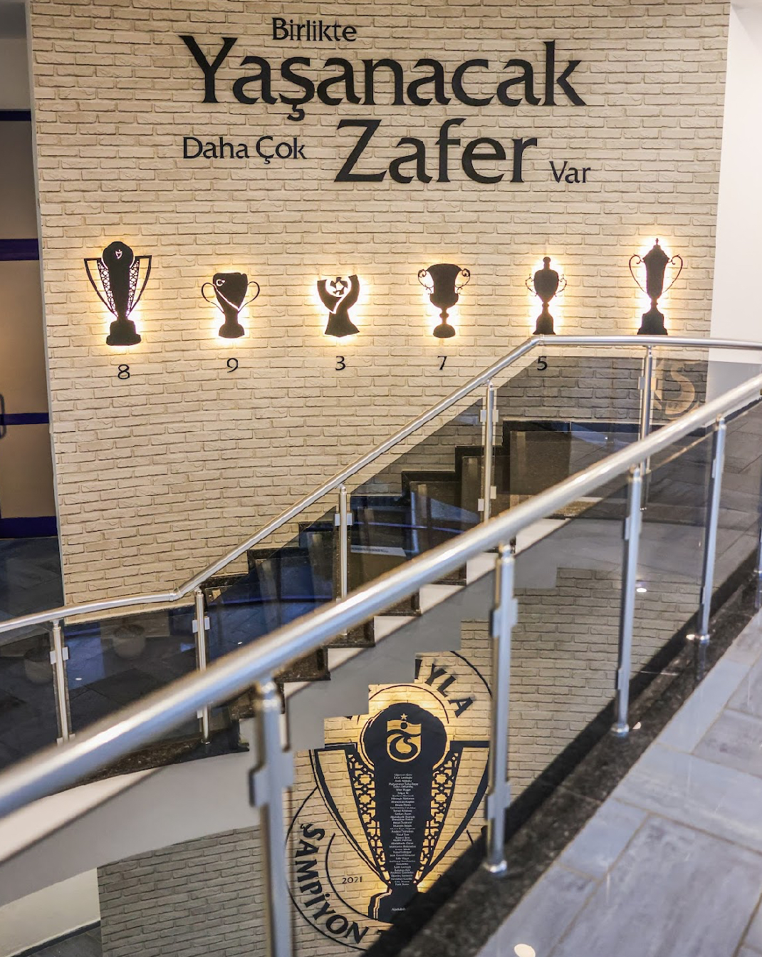Futbolcuların motivasyonunu artırmak amacıyla yapılan çalışmada şampiyonluk temasına vurgu yapılan kaplamalarda, "İnadıyla şampiyon Trabzonspor, birlikte yaşanacak daha çok zafer var ve şampiyon Trabzonspor" ifadeleri yer aldı.