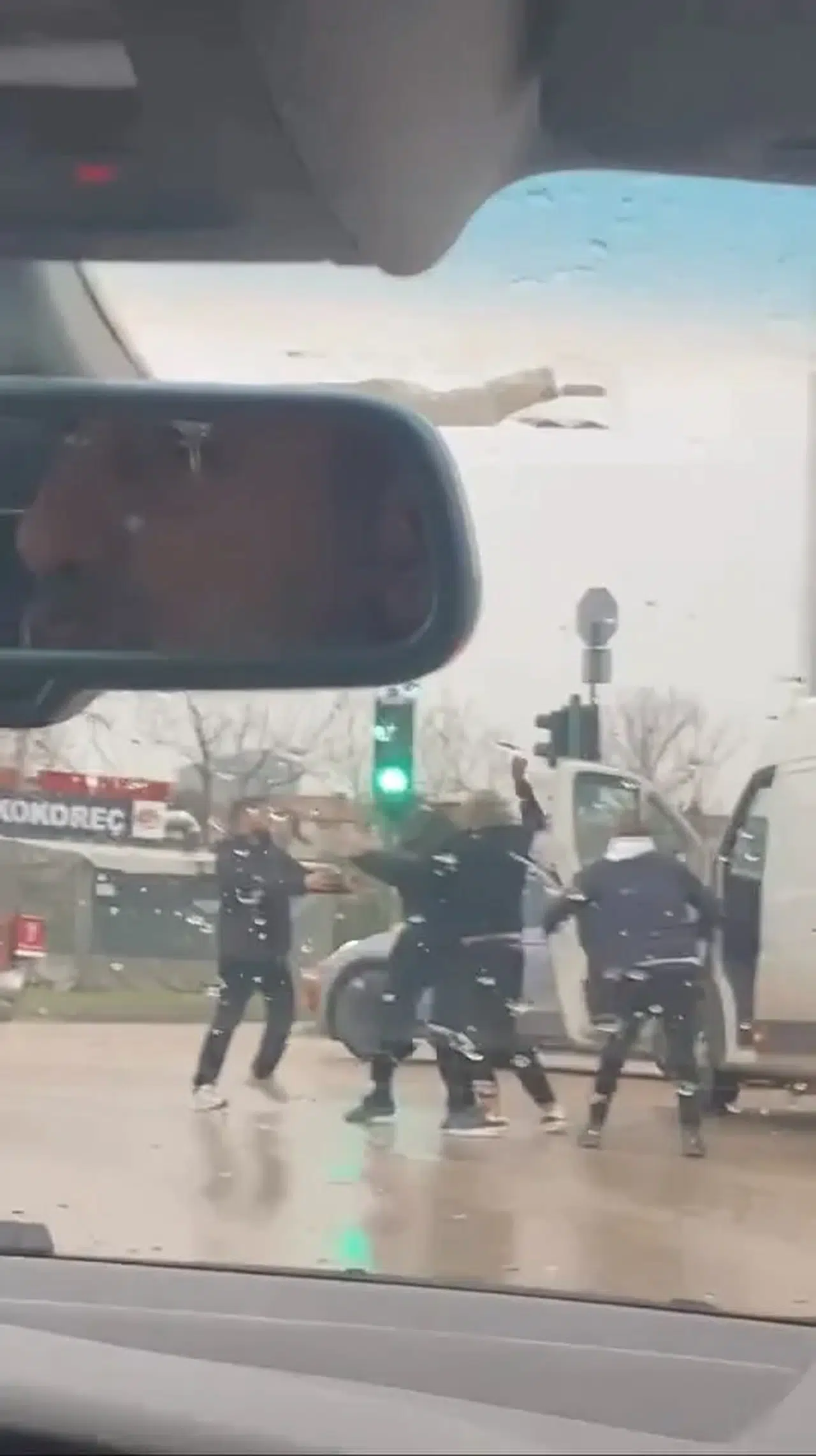 Kentte iki sürücü arasında trafikte başlayan sözlü tartışma kısa sürede kavgaya dönüştü. Yumruk yumruğa kavga eden şahıslar, bir süre sonra hiçbir şey olmamış gibi araçlarına binerek yola devam etti. Çevredeki vatandaşların şaşkın bakışlarla izlediği o anlar bir vatandaşın cep telefonuyla anbean kaydedildi.