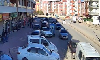 Görüntülerde, bir otomobilin yayaların bulunduğu kaldırıma çıktığı peşinden gelen aracı fark eden sürücünün araçtan indiği sırada diğer araç sürücünün de araçtan inerek saldırdığı görülüyor. Kayıtta, vatandaşların müdahalesinin ardından sürücülerin araçlarıyla olay yerinden ayrıldıkları yer alıyor.