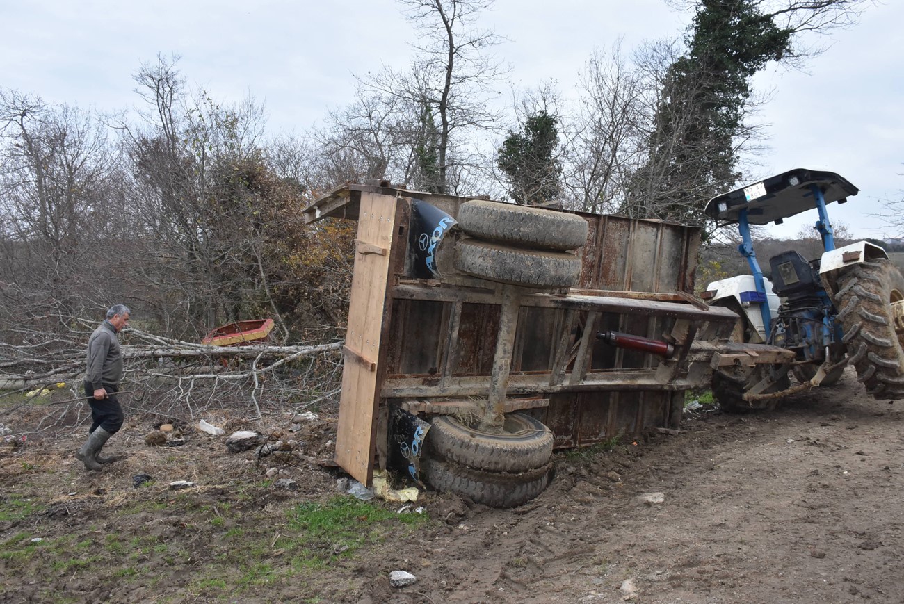 Kaza, Bostancılı Mahallesi Huzurevi mevkiinde saat 12.00 sıralarında meydana geldi. Edinilen bilgiye göre, 57 AJ 802 plakalı traktör ile seyir halinde olan Şerafettin Çetinkaya, köyünde bazı yolların çamurlu olmasından dolayı traktörüyle belediyenin bıraktığı asfalt kırıklarını alarak yola dökmek istedi. Çetinkaya, bu sırada yolun çamur olmasından dolayı traktörü ile birlikte yolun soluna devrildi. Meydana gelen kazada sürücü son anda yara almadan kurtulurken, belediye ekiplerinden malzeme desteği istedi.