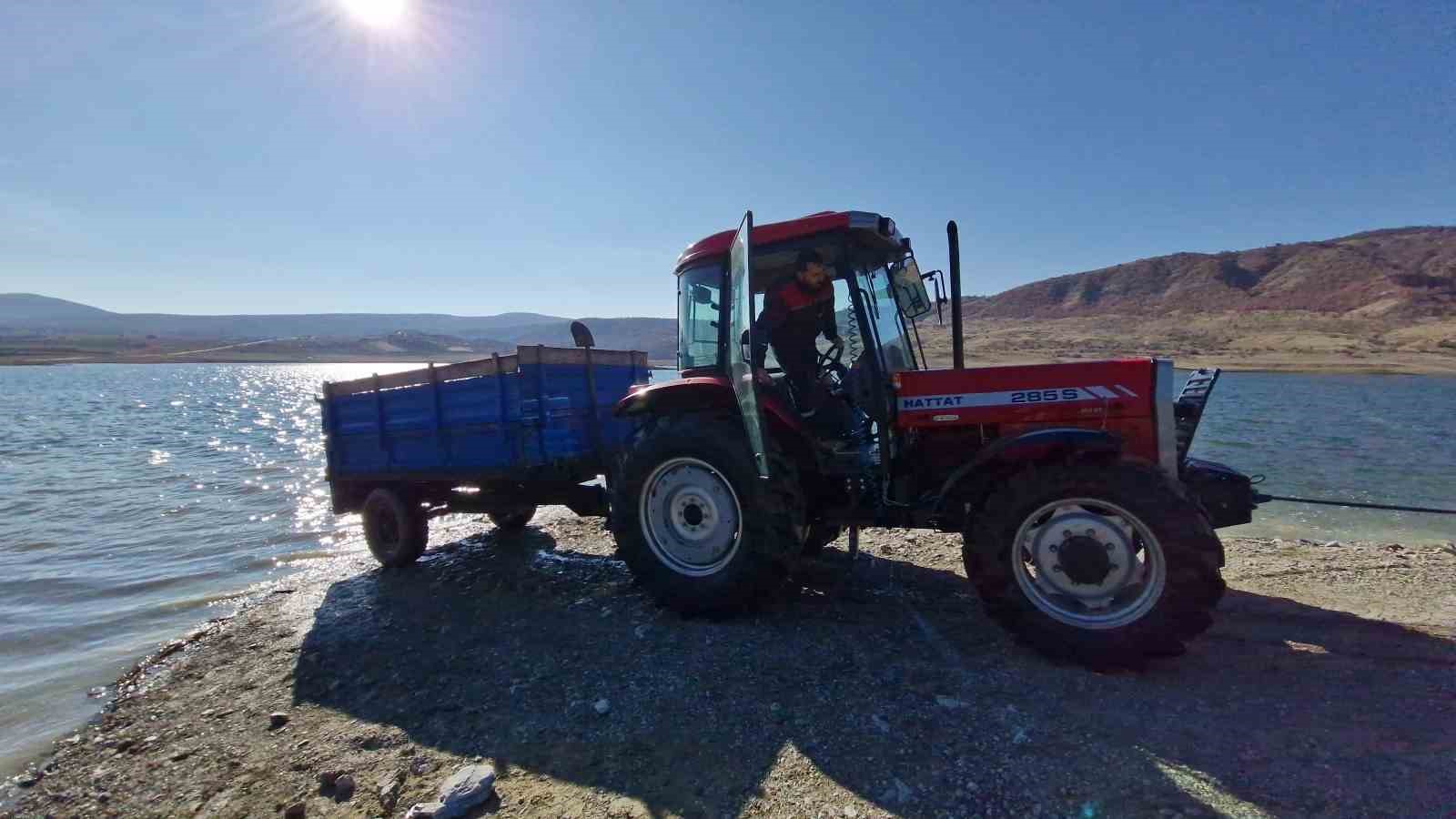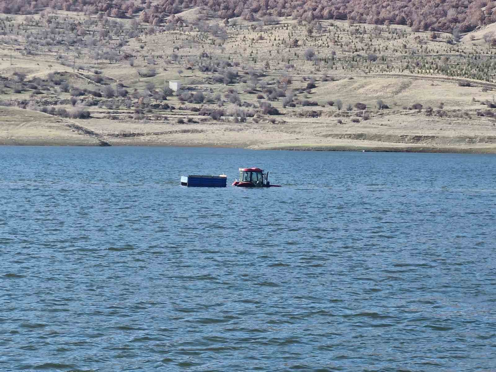 Traktörüyle Girdiği Baraj Gölünde Mahsur Kaldı