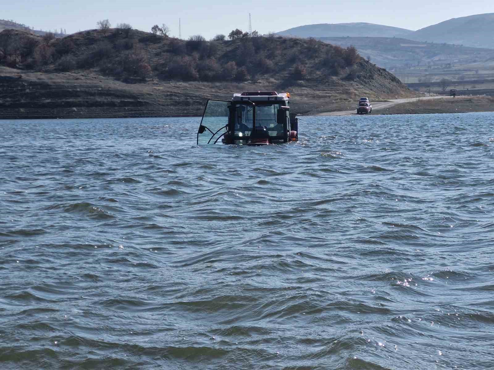 Çorum’da traktörünü yıkamak için girdiği baraj gölünde mahsur kalan sürücü ile kedisini itfaiye ve AFAD ekipleri kurtardı.