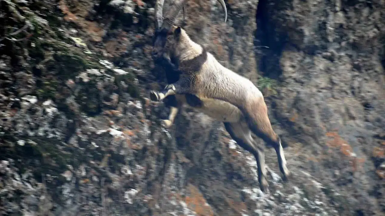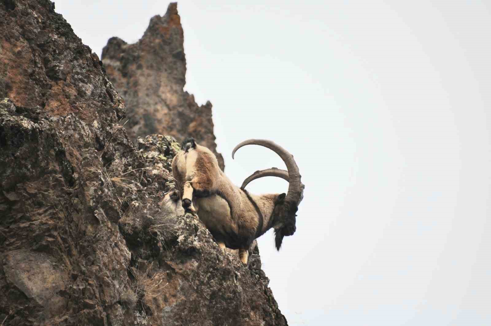 Tunceli’de karlı zirvelerde yiyecek arayan koruma altındaki yaban keçileri görüntülendi. Yaban keçilerinin kayalıklara tırmanışları göz kamaştırdı.