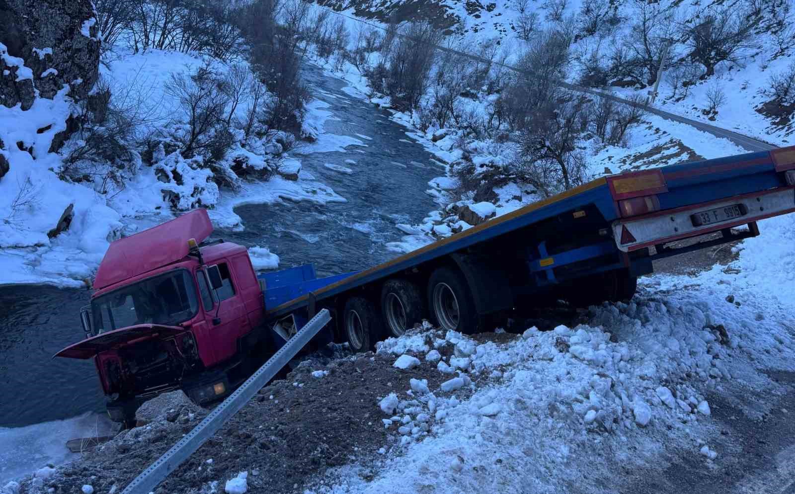 Tunceli’nin Pülümür ilçesinde sürücüsünün virajı alamadığı tır dereye yuvarlandı. Kazada ölen ya da yaralanan olmazken araçta maddi hasar meydana geldi.