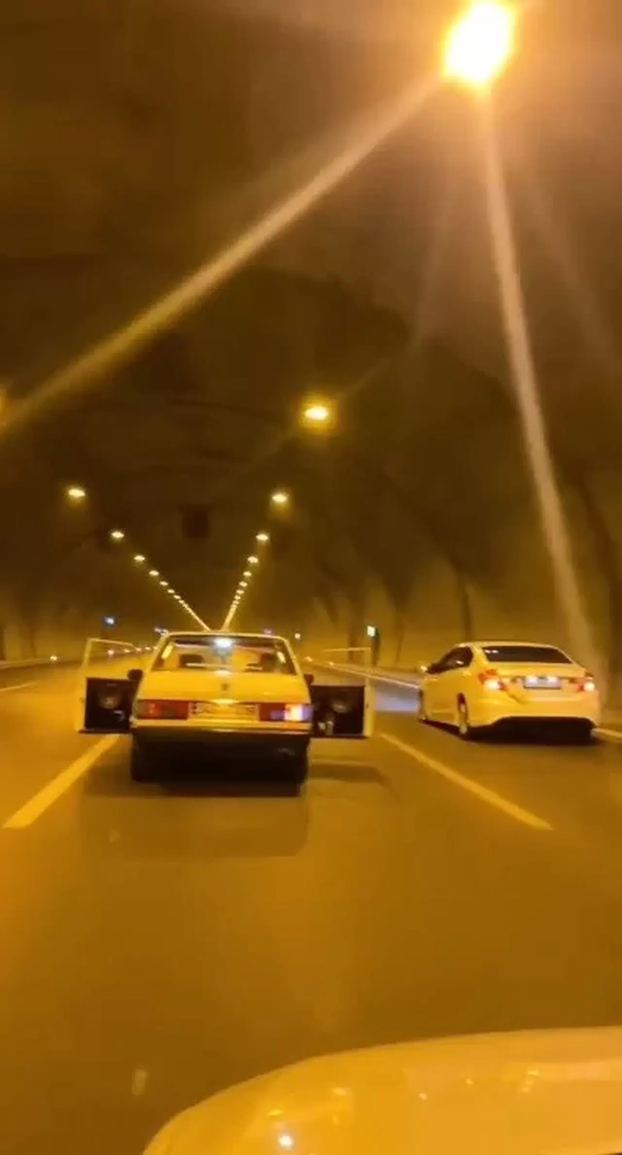 Cebeci Tüneli’nde gece saatlerinde bir aracın sürücüsü ve yolcusu, otomobilin kapılarını açarak dinledikleri şarkının tünel içinde daha fazla duyulmasını sağladı. Otoyolda kapıları açık şekilde ilerleyen otomobil, başka bir aracın cep telefonu kamerası ile görüntülendi.