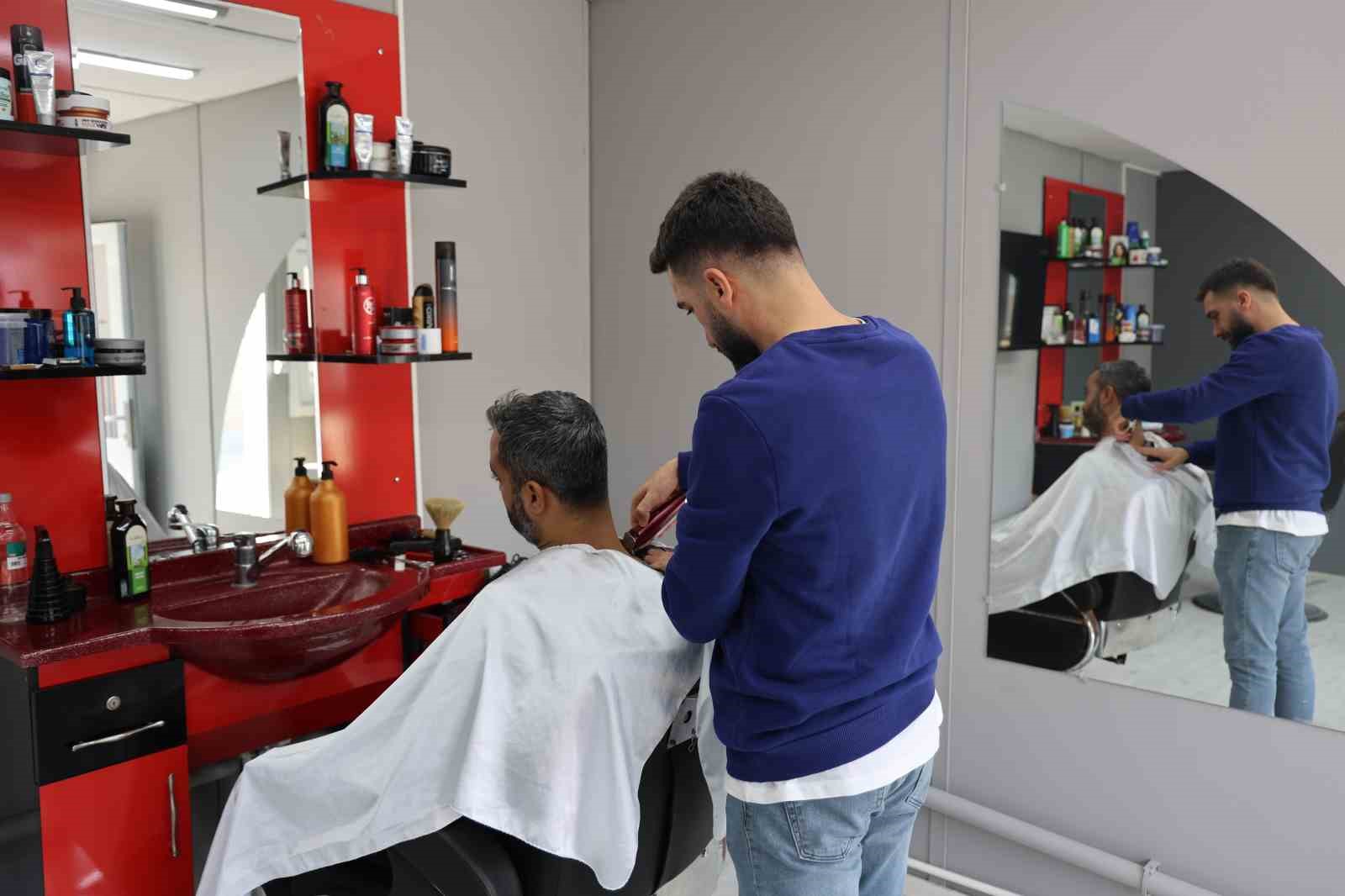 Türk Kızılay’ın esnafa yönelik yaptığı proje sayesinde yeniden iş yeri sahibi olan berber Yusuf Mıdık, mesleğine devam ederek hayata tutunmaya devam ediyor.