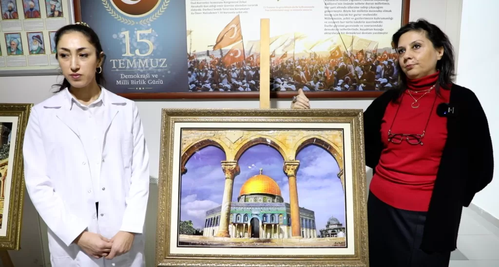 Ertürk, kursiyerlerin özveriyle hazırladığı Mescid-i Aksa tablosu için bir ücret belirlemediklerini, tablonun satışından elde edilecek gelirin Filistin halkının yararına kullanılmasını sağlayacaklarını kaydetti.