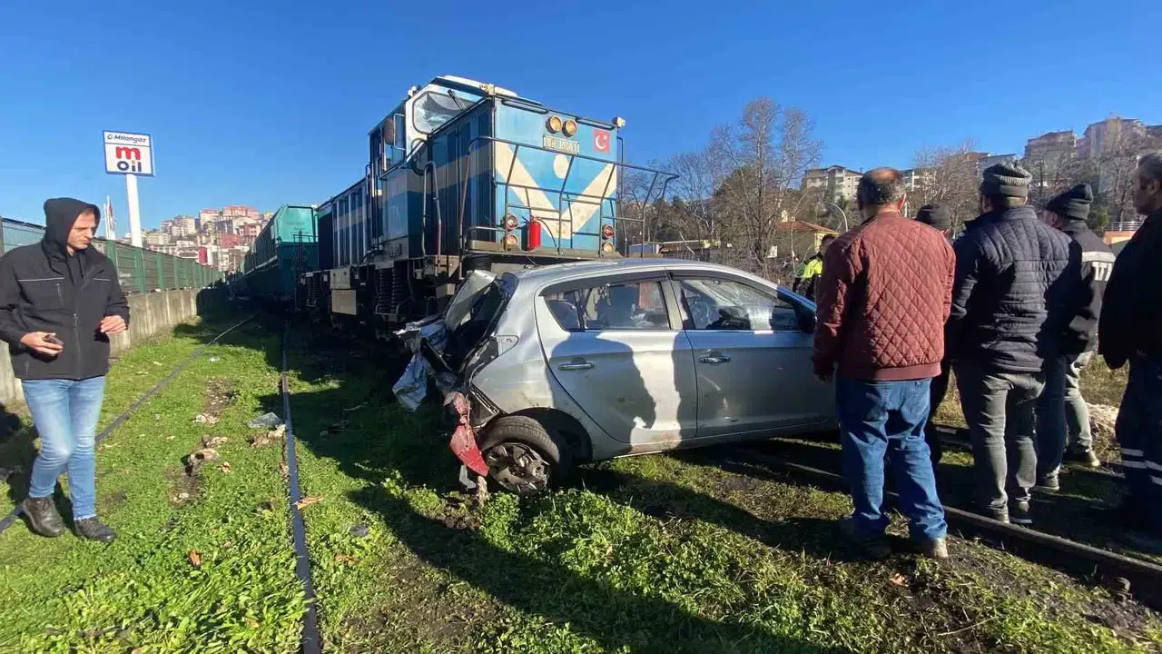 Zonguldak’ta içinde üç kişilik ailenin bulunduğu otomobil trenin çarpması sonucu 30 metre sürüklendi. Aile kazayı hafif yaralı şekilde atlattı.