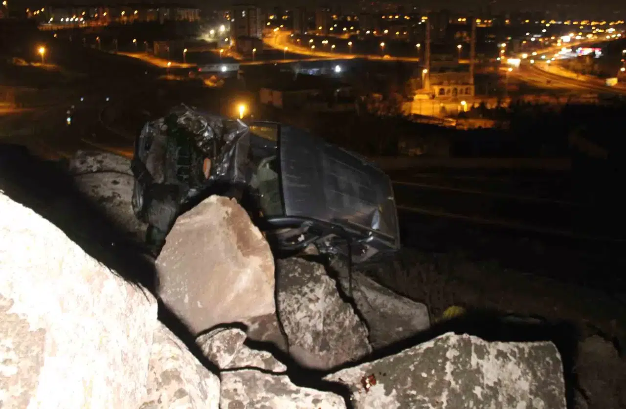 Kayseri’nin Kocasinan ilçesinde uçurumdan yuvarlanan hafif ticari araç, kayalıklarda asılı kaldı. Kazada 1 kişi yaralanırken otomobil ise kullanılamaz hale geldi.