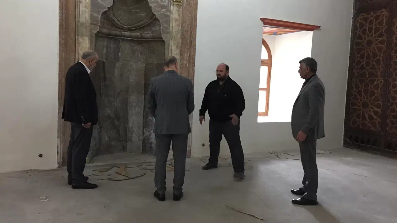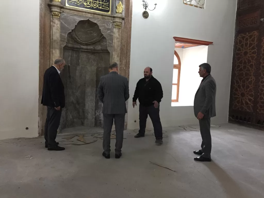 Çorum Müftüsü Muharrem Biçer, restorasyon çalışmalarının Ulu Cami’de incelemelerde bulundu.