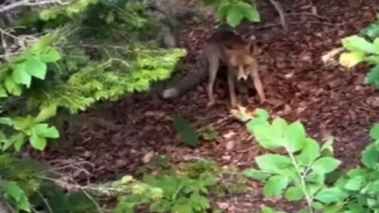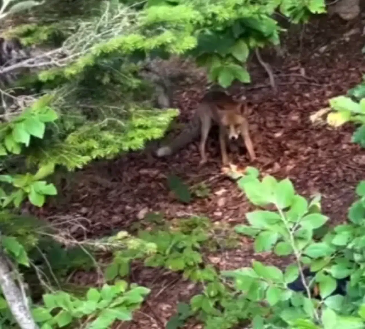 Bursa’da Uludağ Yolu’nda aç kalan tilkiyi vatandaşlar besledi.