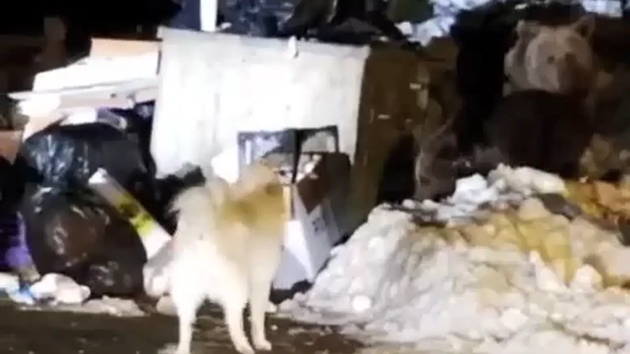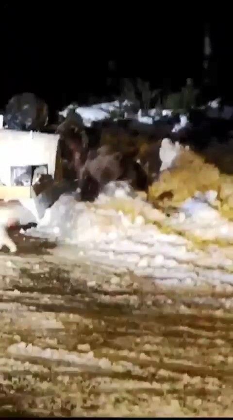 Bir türlü kış uykusuna yatamayan ve Uludağ’ın ‘Uyuyamayan’ ayıları olarak bilinen ayı ailesi, yemek bulmak için Sarııalan’a kadar indi. Çöpte buldukları yiyecekleri afiyetle yiyen ayıları, köpek rahatsız etti. Duruma sinirlenen baba ayı, köpeğe doğru hamle yaparak korkuttu. Ayıdan korkan köpek kaçarken, o anlar anbean amatör kameraya yansıdı.
