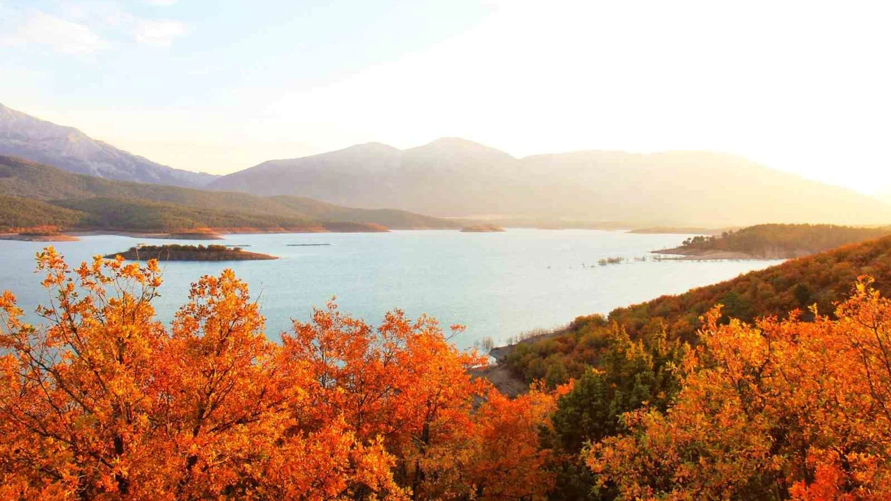 Kahramanmaraş’ın Göksun ilçeasinde Adatepe Barajı etrafı sonbahar ile birlikte renk cümbüşüne dönüştü.