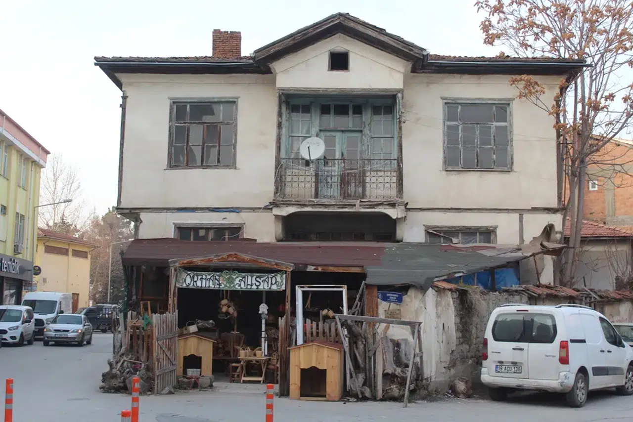 Çorum merkezde, modern binaların arasında sıkışıp kalmış eski bir ev, yıllara meydan okuyarak ayakta durmaya devam ediyor. Şehrin hızla değişen silueti içinde neredeyse görünmez hale gelen bu yapı, alt katında barındırdığı ahşap oyma atölyesiyle geçmişin izlerini bugüne taşıyor.