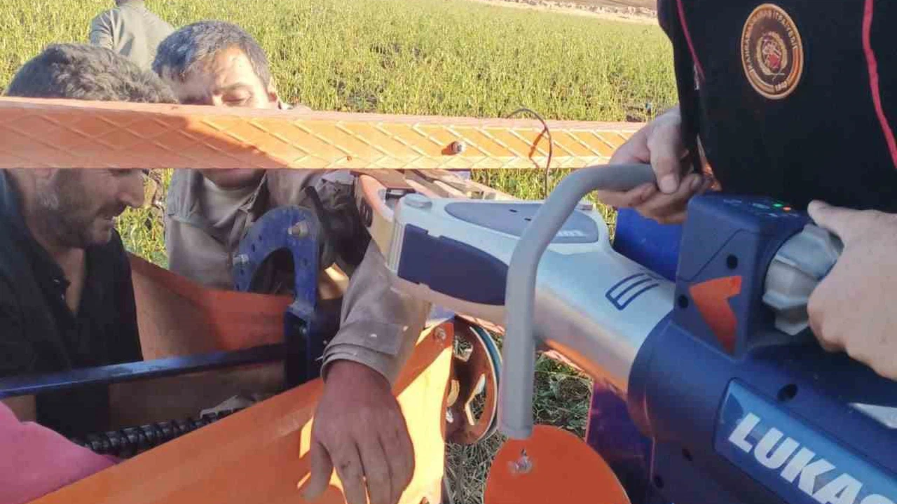 Kahramanmaraş’ta tarlada çalışırken kolu hortum sarma makinesine sıkışan bir kişi itfaiye ekipleri tarafından kurtarıldı.