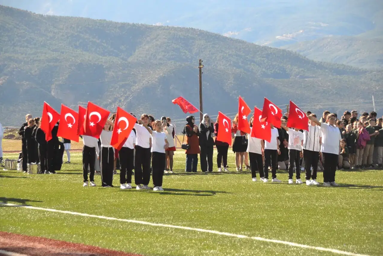 Kargı İlçe Stadyumu'nda düzenlenen kutlama programında Kaymakam Oğuzhan Akman ve Belediye Başkanı Hamit Dereli, halkın ve öğrencilerin bayramını kutladı.
