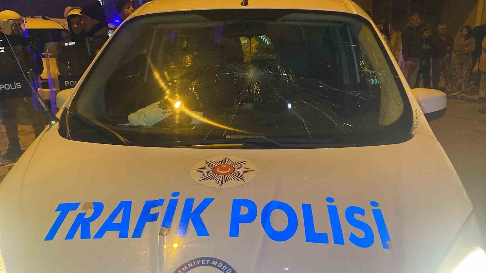 Uşak’ta polis ekiplerinin "dur" ihtarına uymayarak kaçan araçta bulunan şüpheliler, yakalandıkları yerde araçtan inerek polis aracını yumrukladılar.
