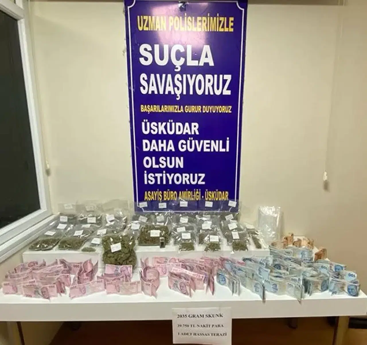 Üsküdar’da uyuşturucu ticaret yapıldığı tespit edilen bir eve polis operasyon düzenledi. Operasyonda bir kişi yakalanırken 2 kilo 35 gram skunk adlı uyuşturucu madde, 39 bin 750 TL para ele geçirildi.