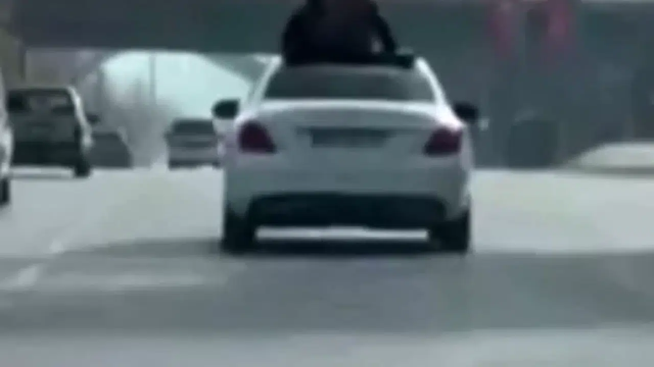 Olay, dün öğle saatlerinde Gaziantep Başpınar Organize Sanayi Bölgesi istikameti İpekyolu mevkiinde meydana geldi. Seyir halinde olan otomobilin üzerine çıkan iki genç, dakikalarca seyahat etti. Araç sürücüsü ve gencin tehlikeli yolculuğu pes dedirtti. Yaşanan o anlar bir başka sürücüsünün cep telefonu kamerasına yansıdı.
