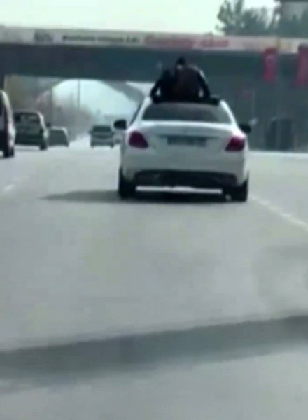 Gaziantep’te iki genç, üstü açık otomobilin üzerine çıkarak uzun süre seyahat etti. Yaşanan tehlikeli yolculuğu başka bir sürücü tarafından cep telefonu ile kaydedildi.