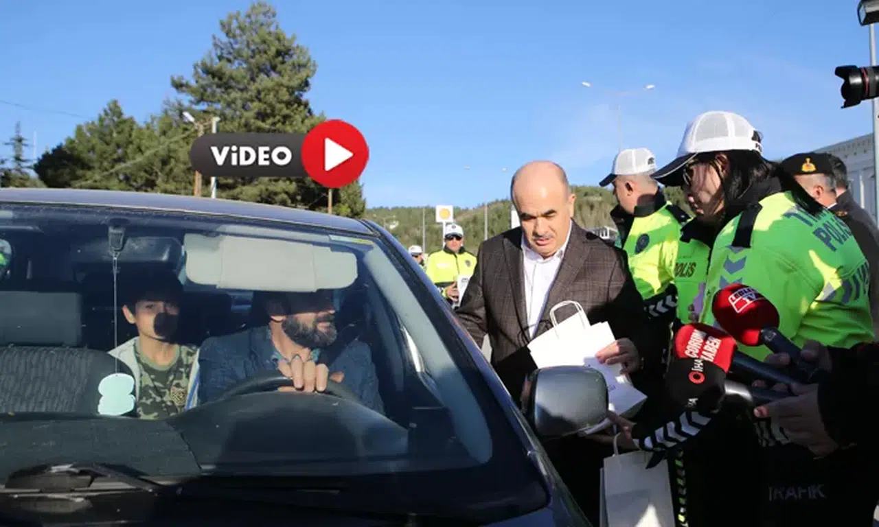 Dağlı, Çorum Bölge Trafik Denetleme Şube Müdürlüğü önündeki uygulama noktasında durdurulan araçların sürücüleriyle sohbet etti.