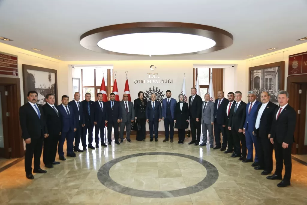 İl Genel Meclisi Başkanı Muhammed Fatih Temur ve beraberindeki üyeler, Çorum Valiliğini ziyaret etti.