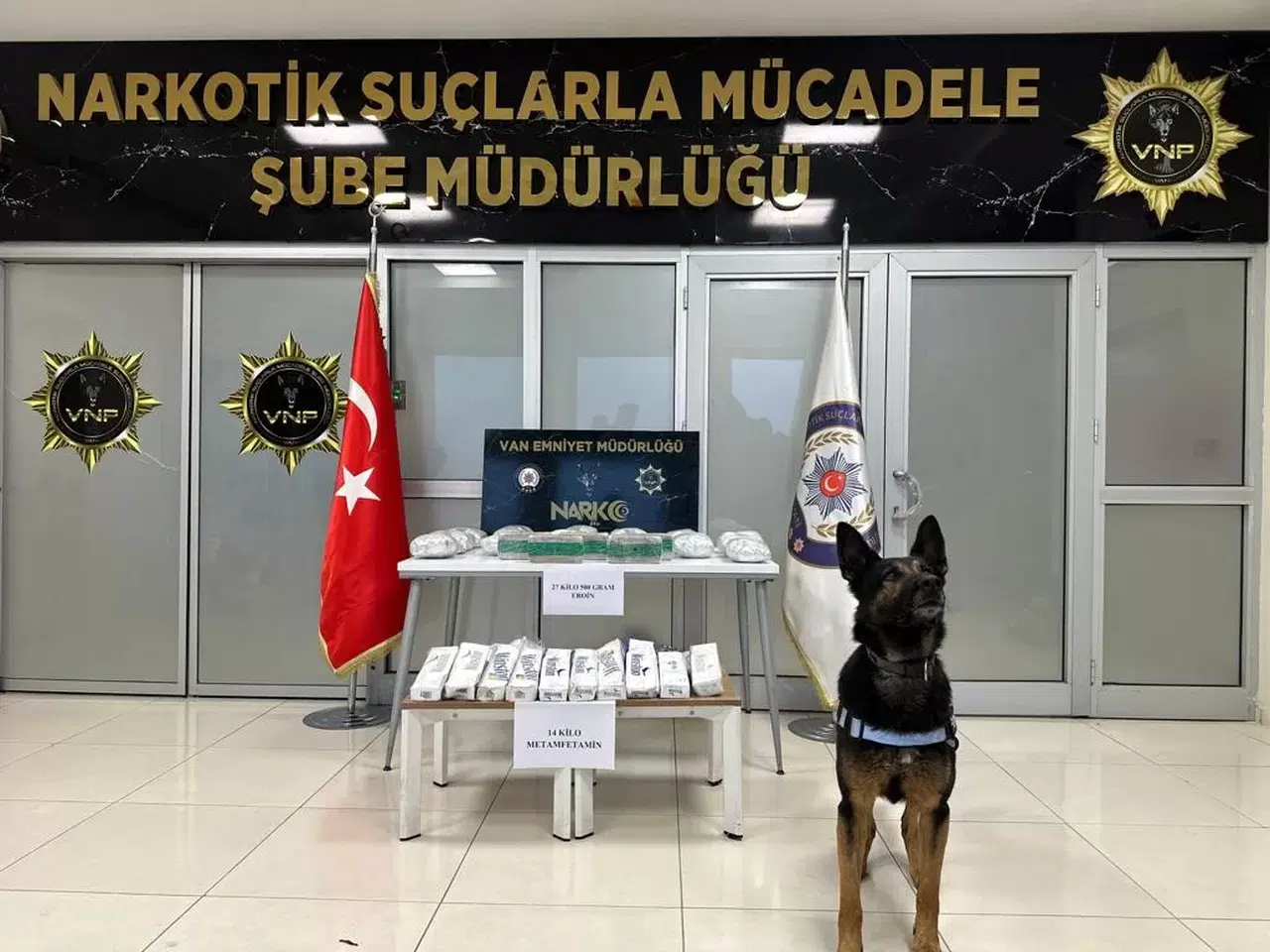 Van Emniyet Müdürlüğünden yapılan açıklamada, il genelinde haksız kazanç sağlamak amacıyla uyuşturucu madde ticareti, nakli veya depolanması faaliyetlerini yürüten şahıs/şahıslara ve sokak satıcılarına yönelik yapılan çalışmaların devam ettiği belirtildi. Açıklamada, "Narkotik Suçlarla Mücadele Şube Müdürlüğü görevlilerimizce yapılan çalışmalar neticesinde; 128 kilo 500 gram eroin, 19 kilogram skunk, 14 kilogram metamfetamin ele geçirilmiştir. Elde edilen uyuşturucu maddeler ile ilgili olarak 4 şüpheli şahıs hakkında yasal işlem yapılmıştır" denildi.