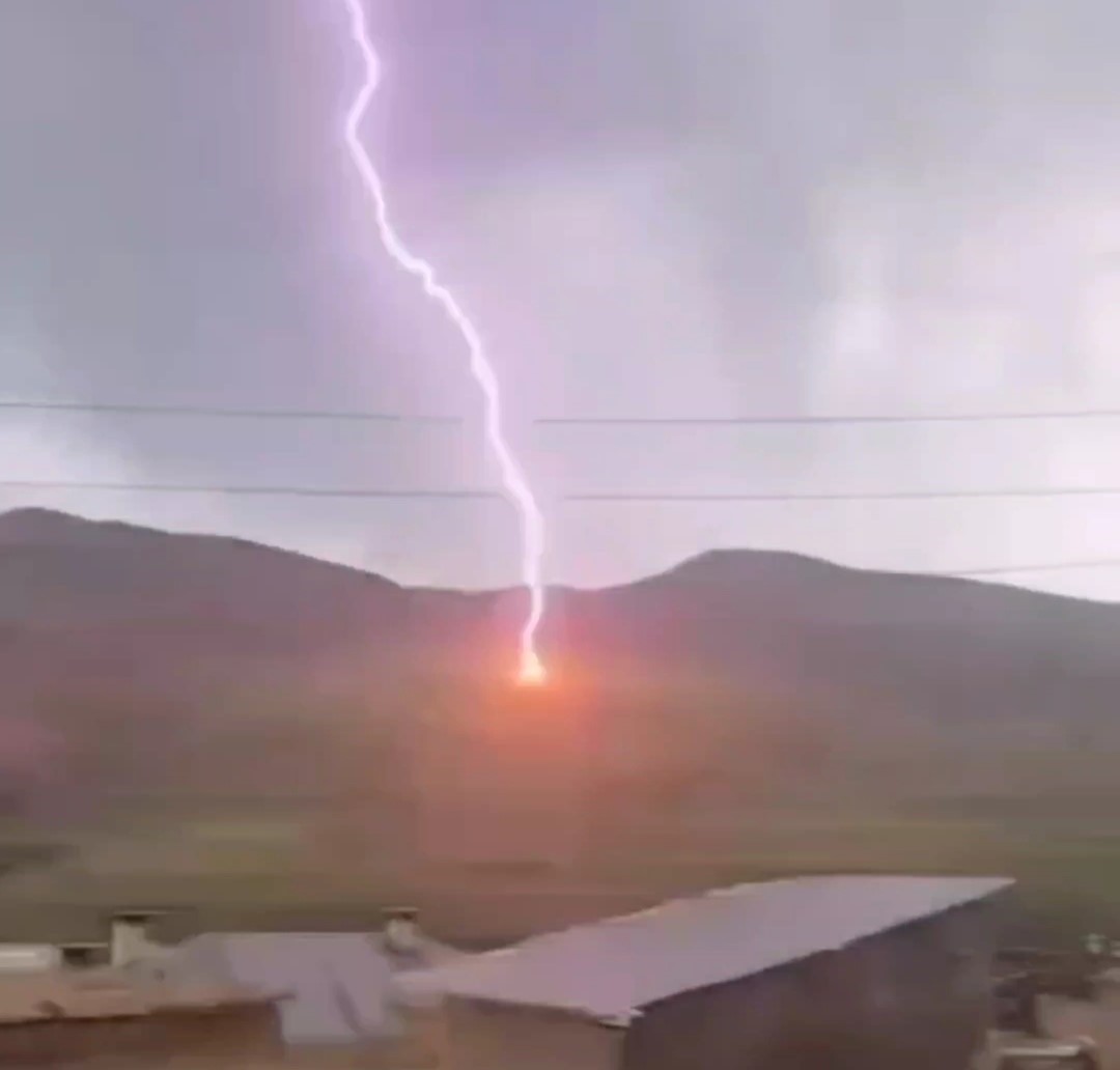 Van’da sağanak yağmur sonrası dağa yıldırım düştü.
