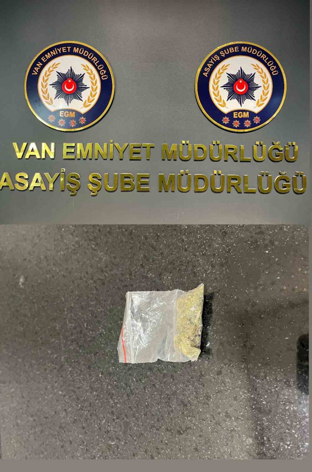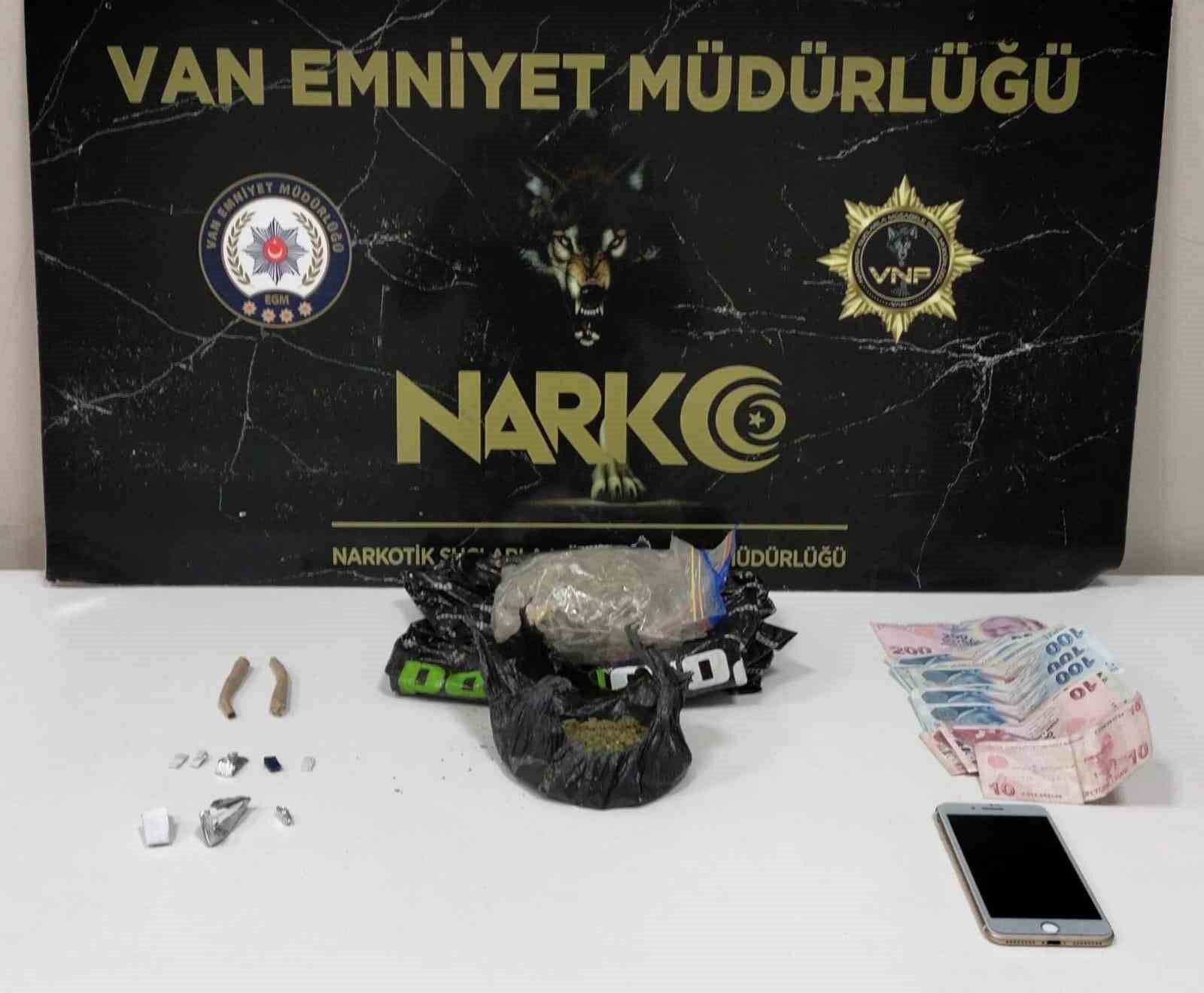 Van Emniyet Müdürlüğünden yapılan açıklamada, il genelinde haksız kazanç sağlamak amacıyla uyuşturucu madde ticareti, nakli veya depolanması faaliyetlerini yürüten ‘torbacı’ diye tabir edilen sokak satıcılarına yönelik yürütülen çalışmaların devam ettiği belirtildi. Açıklamada, “Gençlerin yoğun bulunduğu alanlarda yapılan çalışmalar neticesinde; 1 kilo 538,50 gram metamfetamin, 319,08 gram esrar, 4,23 gram bonzai, 3,47 gram eroin, 1,8 gram kokain, 4 adet sentetik ecza maddesi ele geçirilmiştir. Elde edilen uyuşturucu maddelerle ilgili olarak toplam 19 şahsa yasal işlem yapılmıştır” denildi.