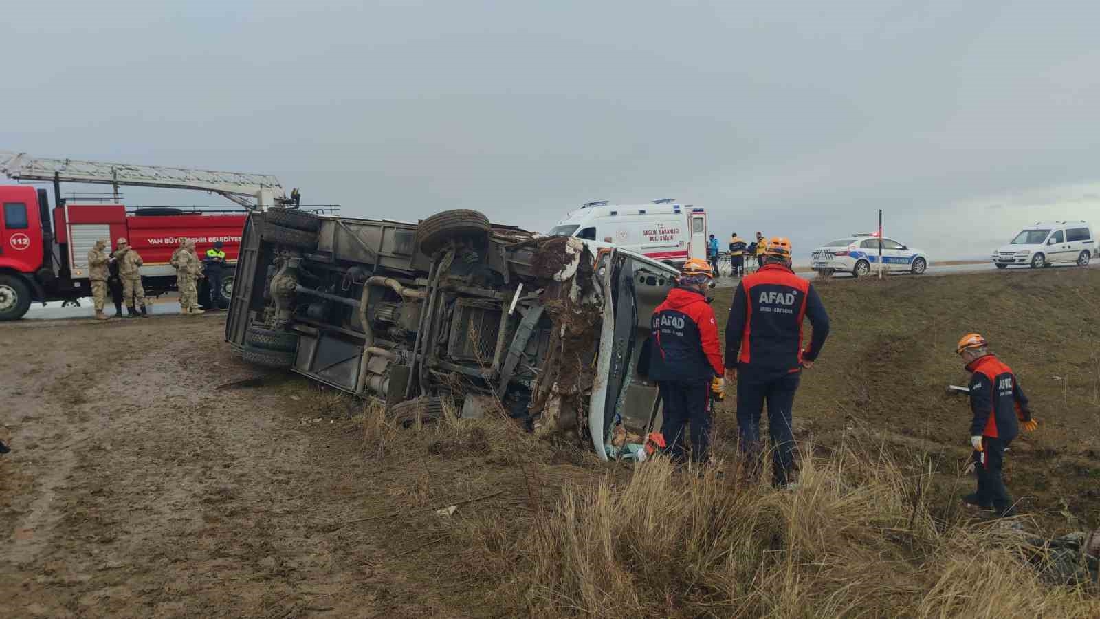 Edinilen bilgiye göre, kaza, Van-Bitlis karayolu üzerinde bulunan Göründü Mahallesi mevkiinde meydana geldi. Sürücüsünün ismi öğrenilemeyen 30 AAE 285 plakalı yolcu midibüsü devrildi. İhbar üzerine olay yerine 112 Acil Sağlık, jandarma, polis, UMKE, AFAD ve Van Büyükşehir Belediyesi İtfaiye Daire Başkanlığı’na bağlı Gevaş Grup Amirliği ekipleri sevk edildi. Midibüsten çıkarılan 4’ü çocuk 27 yaralı, ambulanslarla Van’daki değişik hastanelere kaydırılarak tedavi altına alındı. Yaralıların sağlık durumunun iyi olduğu öğrenilirken, kazaya ilgili tahkikat başlatıldı.