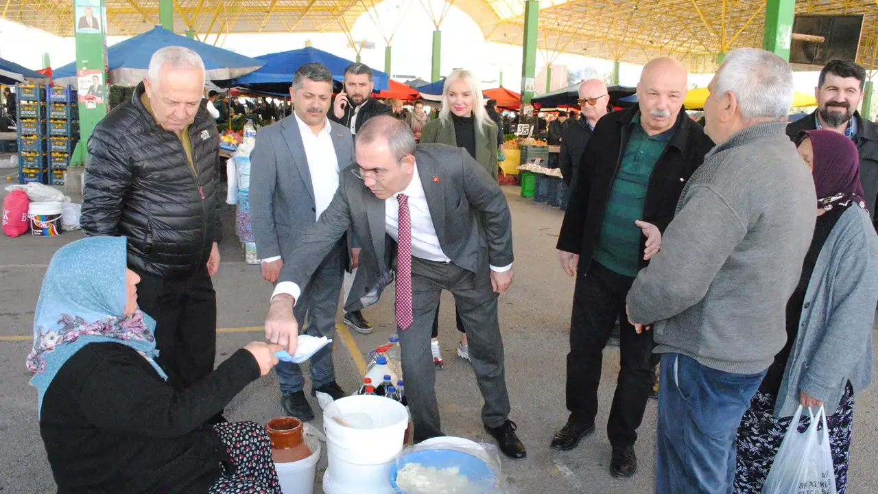 Pazar yerinde Çöphüseyinoğlu’nun özgeçmişinin bulunduğu broşürler ise Belediye Meclisi üyesi adayları tarafından pazarcı esnafı ve vatandaşlara dağıtıldı.