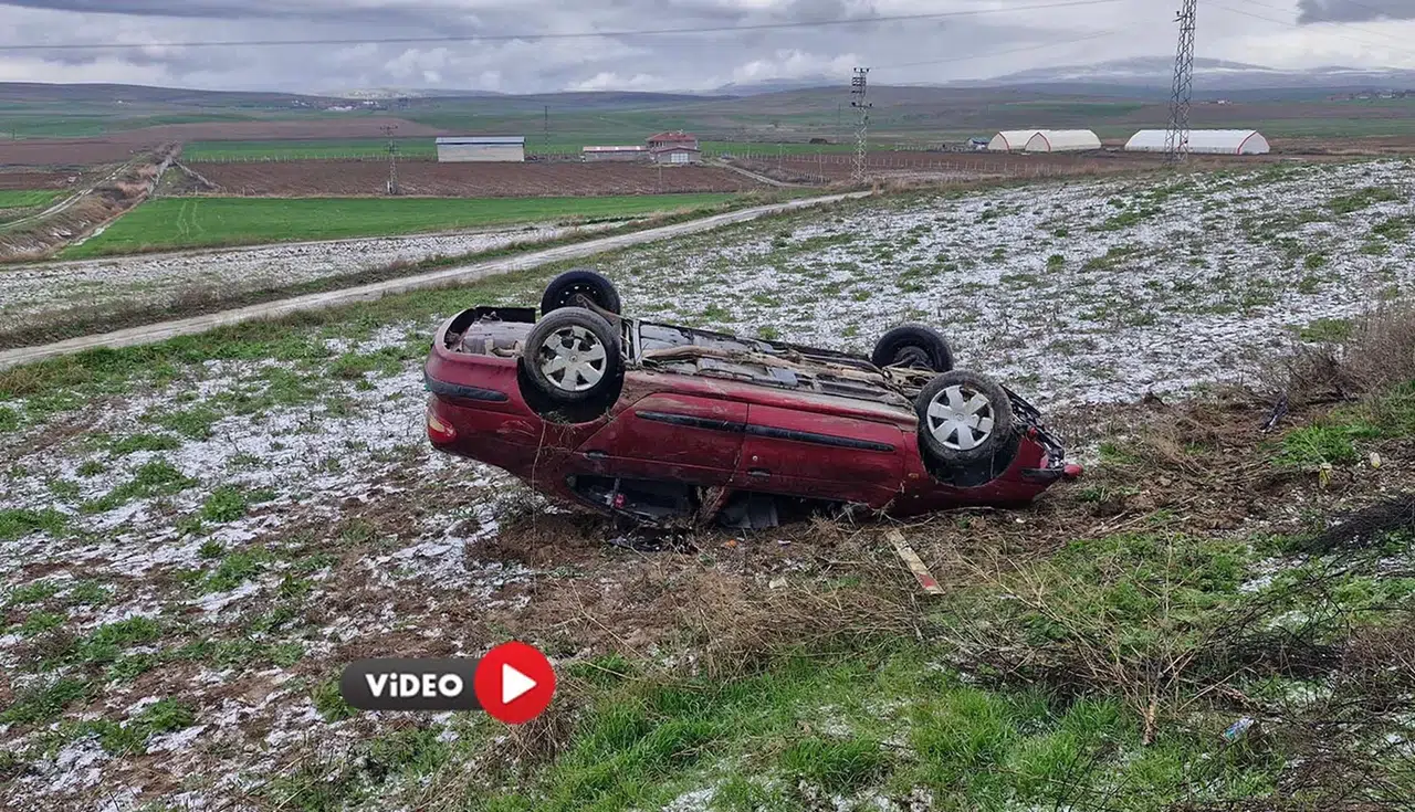 Çorum'un Alaca ilçesinde gizli buzlanma sebebiyle şarampolde yuvarlanan otomobildeki 3 kişi yaralandı.