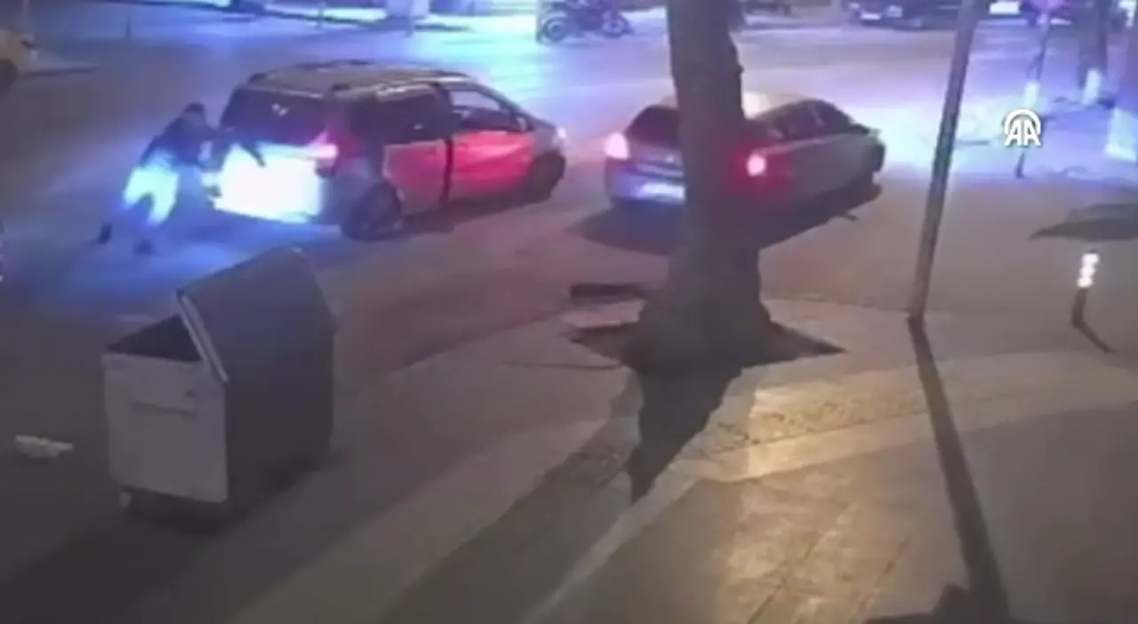 Görüntüde İ.Ö'nün hafif ticari aracın sürücü kapısının bulunduğu bölümüne yaklaştığı, bir süre sonra sekerek aracın diğer tarafına ve arka bölümüne ilerlediği görülüyor. İ.Ö'nün araç hareket ettiği sırada arka plakasını sökmesi de görüntüde yer aldı.