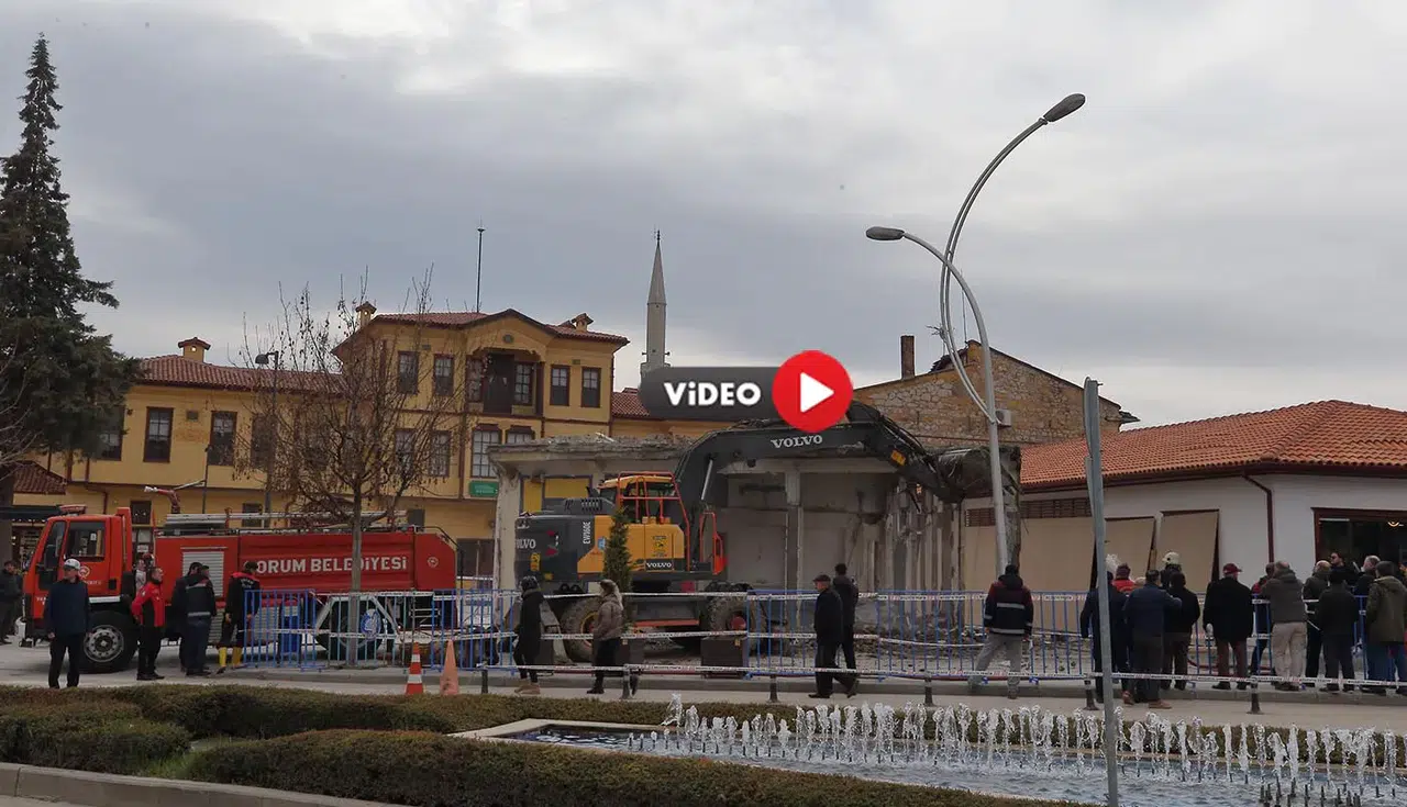 Çorum'da şehir merkezinin çehresi değiştirmek amacıyla yürütülen "Tarihi Kent Meydanı Projesi"nin ikinci etabında, tarihi Saat Kulesi ile tarihi Velipaşa Hanı arasında kalan son yapının kamulaştırma sürecinin tamamlanmasının ardından yıkımına başlandı.