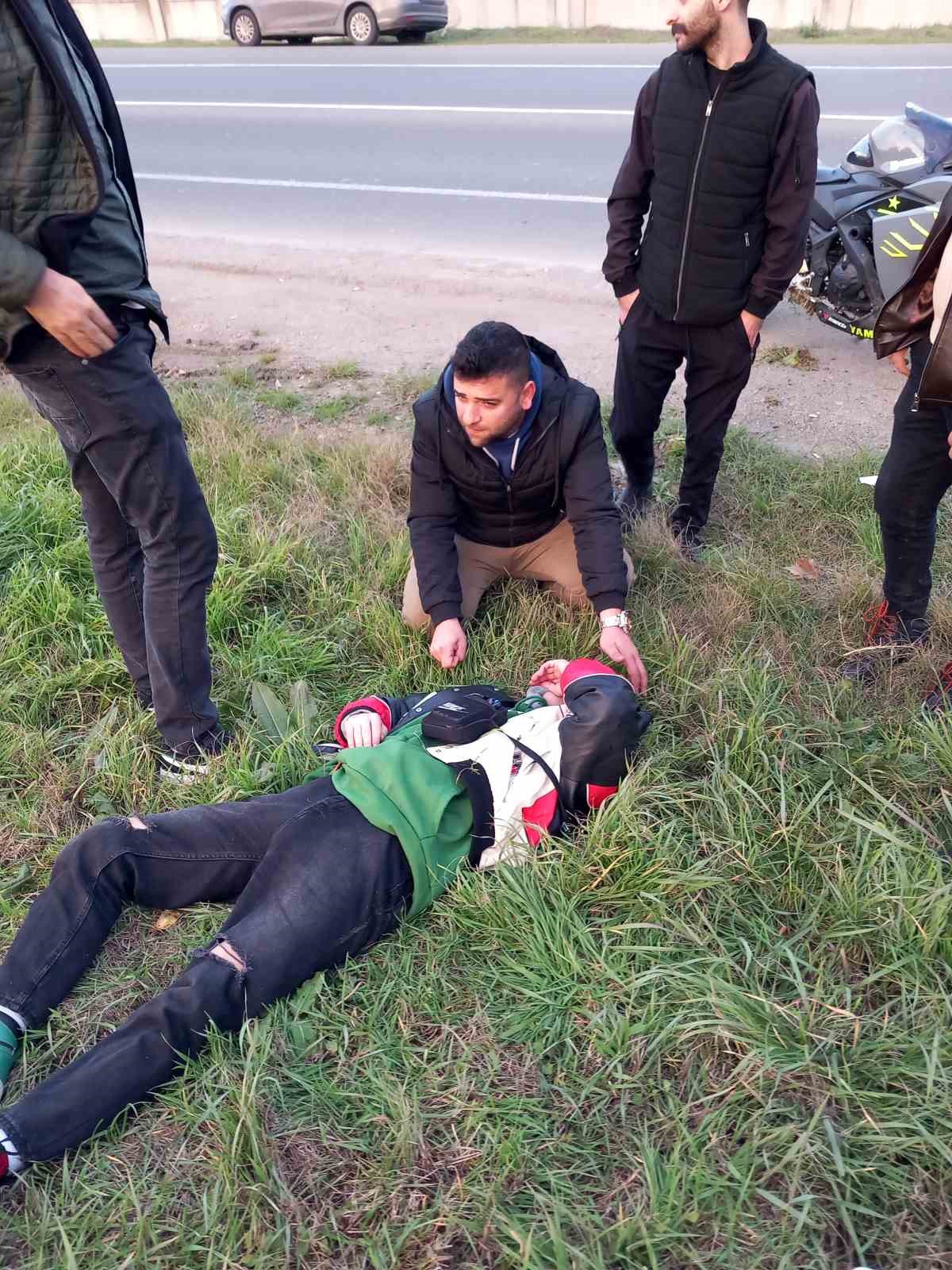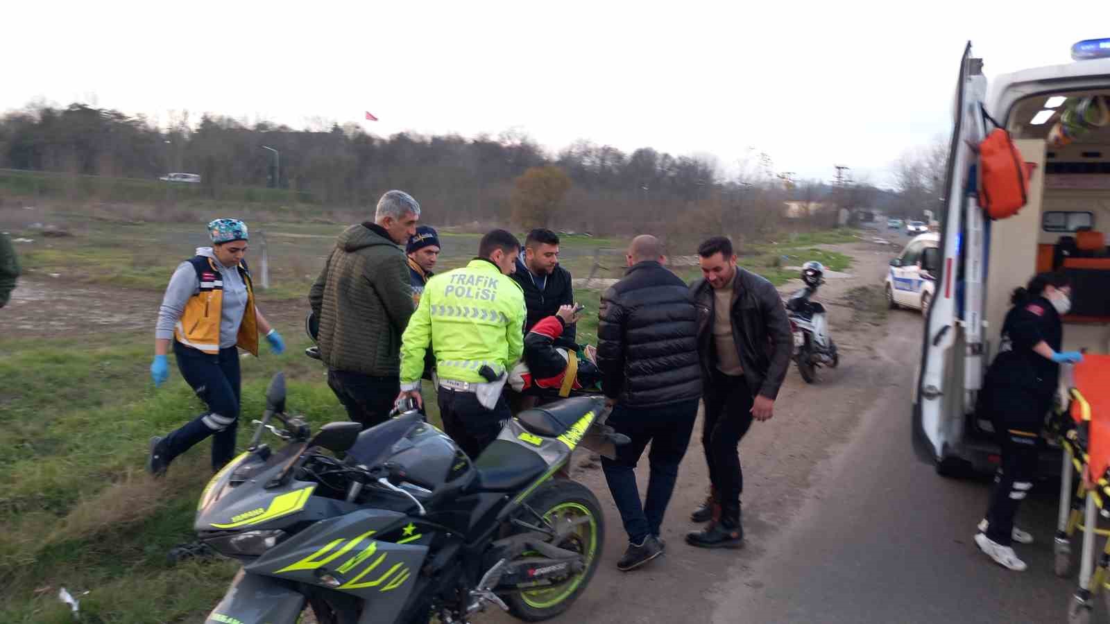 Tekirdağ Çorlu’da virajı alamayan motosikletli şarampole yuvarlandı. Yaralanan motosiklet sürücüsü hastaneye kaldırıldı.