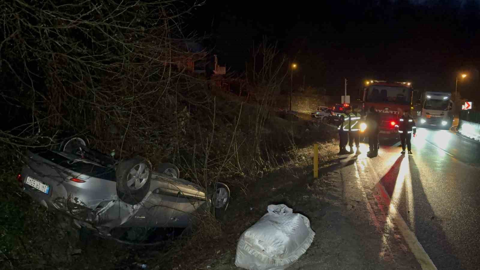 Düzce’de virajı alamayıp takla atan otomobil kanala uçtu. Kazada sürücü burnu bile kanamadan araçtan çıktı.