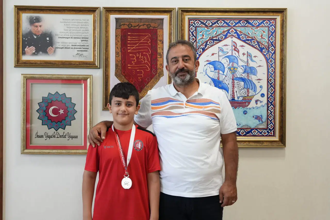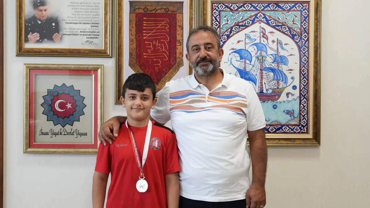 24-25 Temmuz tarihleri arasında Ankara’da düzenlenen U11 Türkiye Güreş Şampiyonası’nda 48 Kg.’da şampiyon olan Berkay Gözübüyük ve Güreş Antrenörü İlyas Güneş ile birlikte Belediye Başkan Yardımcısı ve aynı zamanda Kulüp Başkanı İsmail Yağbat’ı makamında ziyaret etti. Çorum Belediyesi Spor Kulübü’nün Çorum’da yükselen bir değer olduğunu ve bunun en güzel göstergesinin U11 Türkiye Şampiyonası’nda alınan başarı olduğunun altını çizen Belediye Başkan Yardımcısı İsmail Yağbat “Çorum Belediyesi olarak Çorum’un spor şehri olması adına Çorum amatör sporuna büyük destekler veriyoruz. Bunun yanı sıra bünyemizde bulunan spor kulübümüzde de başarılı sporcuların çıkması adına gayret gösteriyoruz. Bilindiği gibi Süper Lig’de mücadele eden güreş takımımız büyükşehir takımlarını geride bırakarak 2. olma başarısı gösterdi. Tesisleşmeden altyapıya kadar pek çok alanda “Spor Şehri Çorum” sloganıyla yatırımlarımızı ve çalışmalarımızı sürdürüyoruz. Spor şehri olabilmek için altyapıya önem vermek gerekiyor. Hem ev sahipliği yaptığımız şampiyonalarda hem de gittiğimiz şampiyonalarda Çorum’un adını duyurmak bizleri mutlu ediyor. Kulübümüz içerisinde de sporun her branşında çalışmalar yapıyor, gençlerimize hizmet vermeye çalışıyoruz. Yaptığımız çalışmaların meyvelerini de altyapıda yetişen kardeşlerimizin elde ettiği başarılarla alıyoruz. Güreş gibi gençlerin hem zihinsel hem bedensel gelişimlerine katkı sağlayan spor dalında elde edilen başarıdan dolayı sporcumuzu ve emek veren antrenörlerimizi kutluyorum. U11 gibi minderin en küçük kategorisinde alınan başarı hem küçük yaştaki çocuklarımıza hem de gençlerimize verdiğimiz değerin ve eğitimin en büyük göstergesidir. Şampiyonalarda şehrimizin adının duyurulması adına ter döken tüm sporcularımıza Belediye Başkanımız Dr. Halil İbrahim Aşgın adına teşekkür ediyor, başarılarının devamını diliyorum” ifadelerini kullandı.