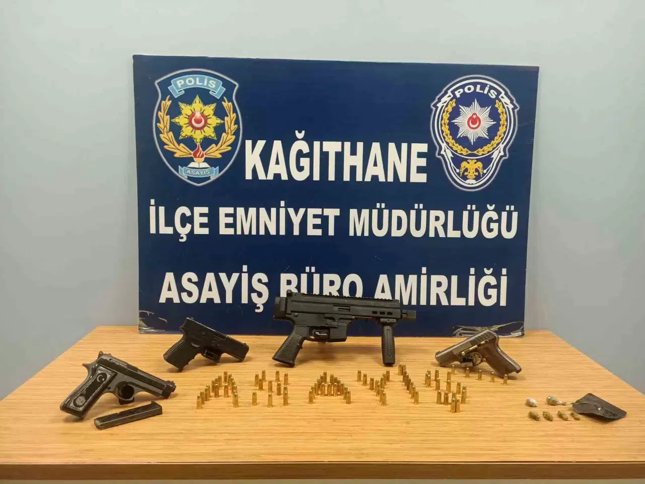 Kağıthane’de aranan ve 29 yıl 4 ay 20 gün kesinleşmiş hapis cezası bulunan şahsın Beylikdüzü’nde olduğunu tespit eden polis ekipleri, adrese operasyon düzenlendi. Operasyonda kesinleşmiş hapis cezası bulunan firari, Uzi silahla yakalandı.