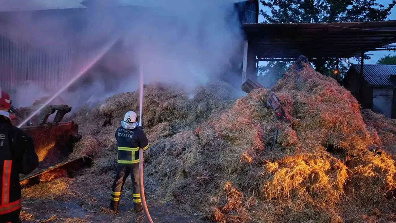Yalova’nın Altınova ilçesi Ayazma köyünde saman depolanan hangarda çıkan yangın, itfaiye ekipleri tarafından söndürüldü.