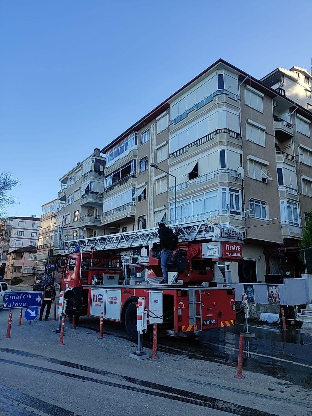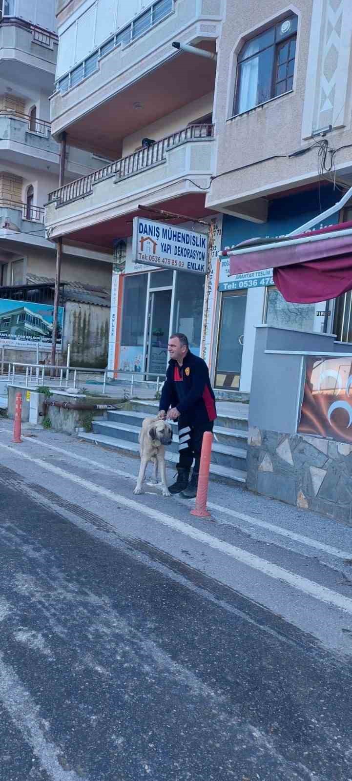 Yalova’nın Çınarcık ilçesine bağlı Esenköy beldesinde 4 katlı apartmanın çatısına çıkarak mahsur kalan köpek, itfaiye ekiplerinin çalışmasıyla aşağı indirildi.