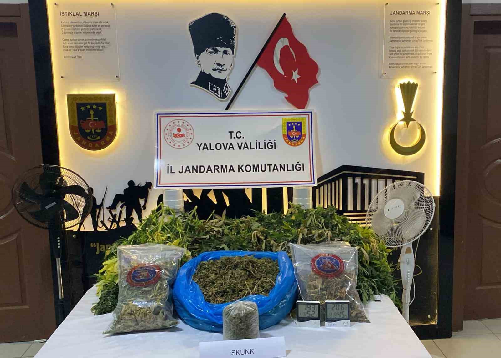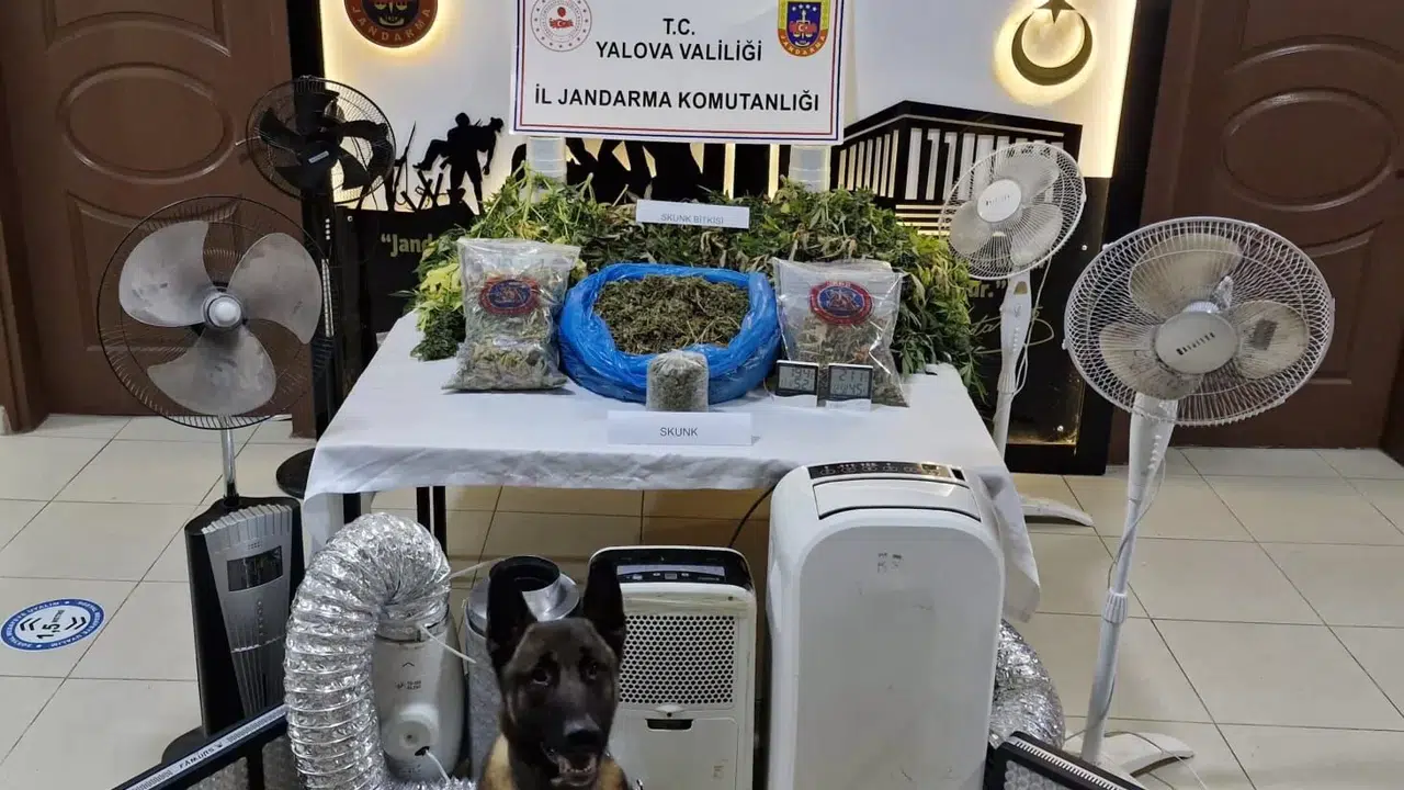 Yalova’da uyuşturucu üretilen villaya yönelik düzenlenen operasyonda 2 kişi gözaltına alınırken 1 kilo 546 gram skunk, 27 kök skunk ile uyuşturucu üretiminde kullanılan çok sayıda malzeme ele geçirildi.