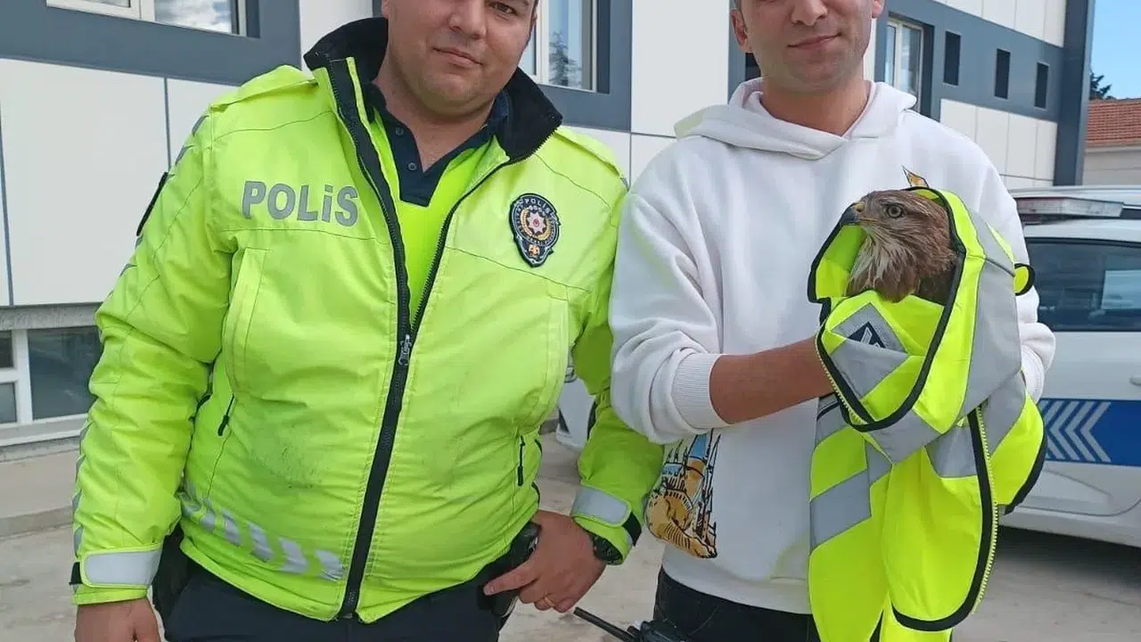 Edirne’de polis ekiplerince yolda yaralı halde bulunan atmaca koruma altına alındı.