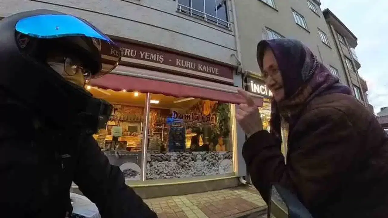 Bursa’da motosiklet sürücüsü ile yolda ilerleyen yaşlı kadın arasında yaşanan diyalog beğeni topladı.