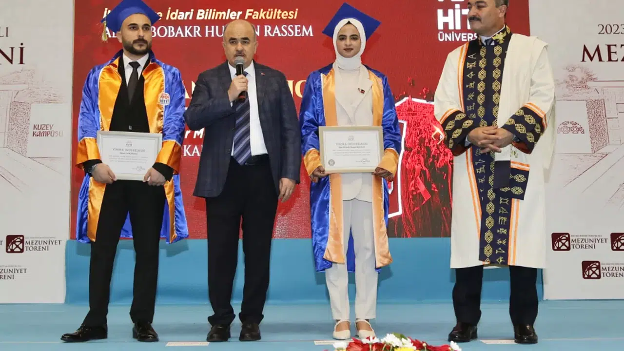 Hitit Üniversite 2023-2024 eğitim öğretim yılı mezuniyet töreni gerçekleştirildi. Törende üniversiteyi birincilikle bitiren Yemenli öğrenci Alaa Abobakr Hussein Rassem mezun öğrenciler adına konuşma yaptı.