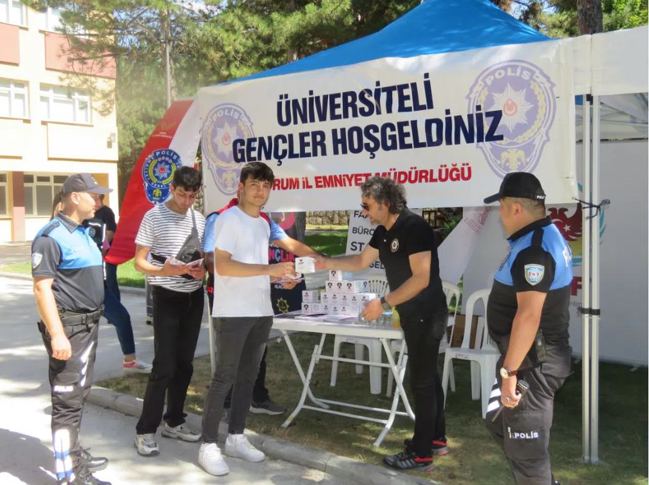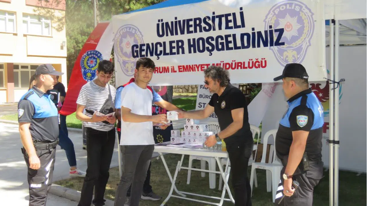 İl Emniyet Müdürlüğüne bağlı Terörle Mücadele Şube Müdürlüğü, Güvenlik Şube Müdürlüğü, Narkotik Suçlarla Mücadele Şube Müdürlüğü ve Toplum Destekli Polislik Şube Müdürlüğü ekipleri, 2023-2024 eğitim ve öğretim döneminde Hitit Üniversitesinde eğitim hayatına devam edecek öğrenciler için bilgilendirme standı açtı.
