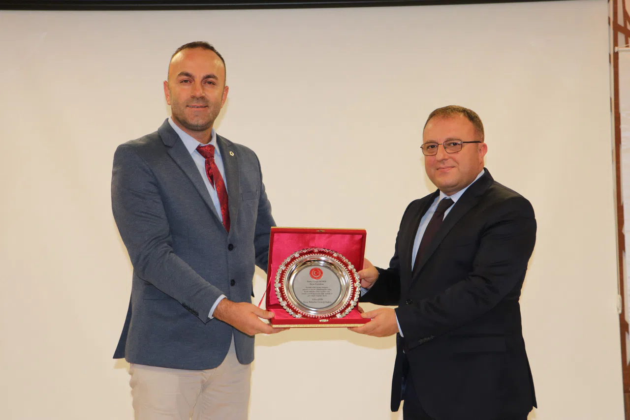 Havza Muhtarları Derneği Başkanı Adem Şahin de Nayman'a muhtar adına plaket sundu. (AA)