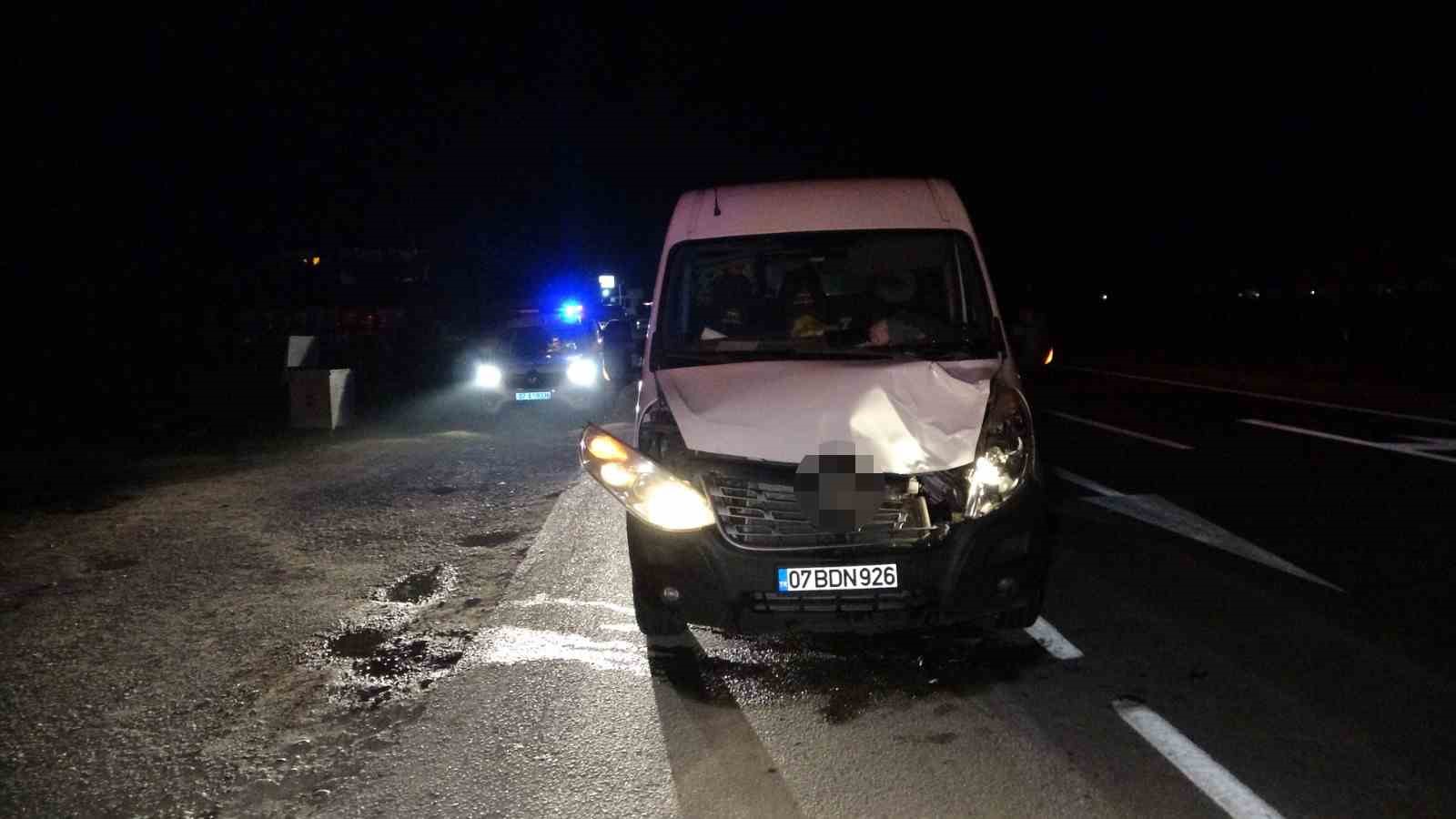 Kaza, gece saatlerinde Alanya-Manavgat D-400 Karayolunda meydana geldi. Alınan bilgiye göre, Alanya’dan Manavgat istikametine seyir halindeki Seydi Çiftçi’nin kullandığı 07 BDN 926 plakalı kapalı kasa kamyonet, yaya Hasan Aslan’a (56) çarptı. Hasan Aslan çarpmanın şiddetiyle 15-20 metre ileriye fırlarken, sağlık ekiplerinin yaptığı kontrolde olay yerinde yaşamını yitirdiği belirlendi.