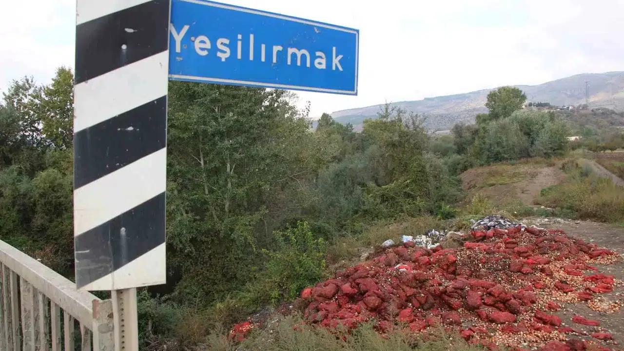 Soğan üretiminde Türkiye’de ikinci sırada bulunan kentte, Amasya - Çorum kara yolu üzerindeki bir köprünün altından akan nehir sularının kıyısında kirliliğe ve kötü kokuya yol açan bu durum tepkiye neden oldu.
