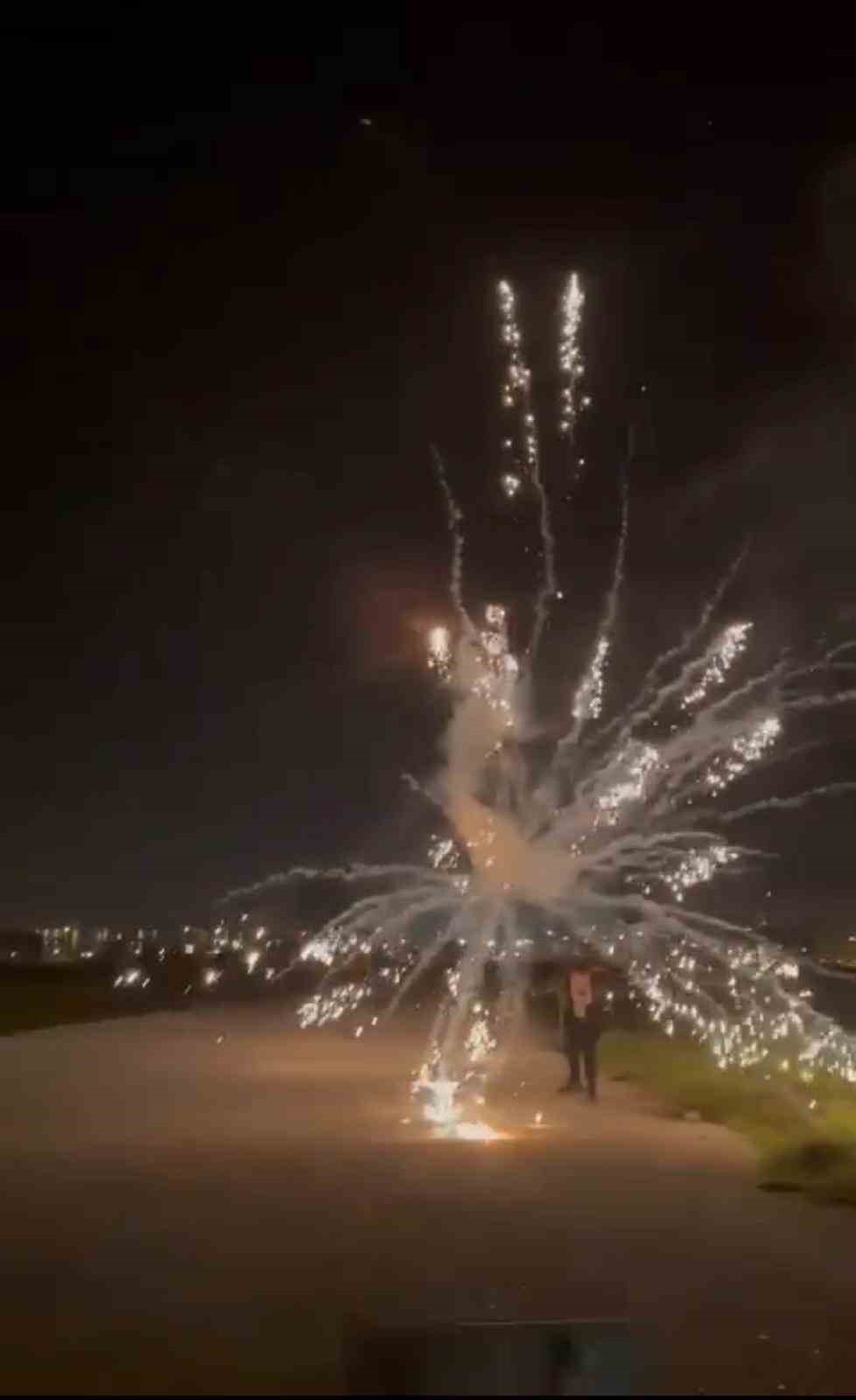Alınan bilgiye göre, merkez Yıldırım ilçesi Millet Mahallesi’nde yeni yılı kutlamak isteyen genç, fişekleri peş peşe ateşledi. 4-5 fişek sorunsuz olarak görsel şölen sunarken, son fişek ise gencin elinde patladı. Arkadaşları o anları kayda alırken, büyük korku yaşayan genç eğilerek ve uzaklaşarak fişeğin parçalarından kurtulmaya çalıştı. Olayı yara almadan atlatan gencin arkadaşları anbean olanları görüntüledi.