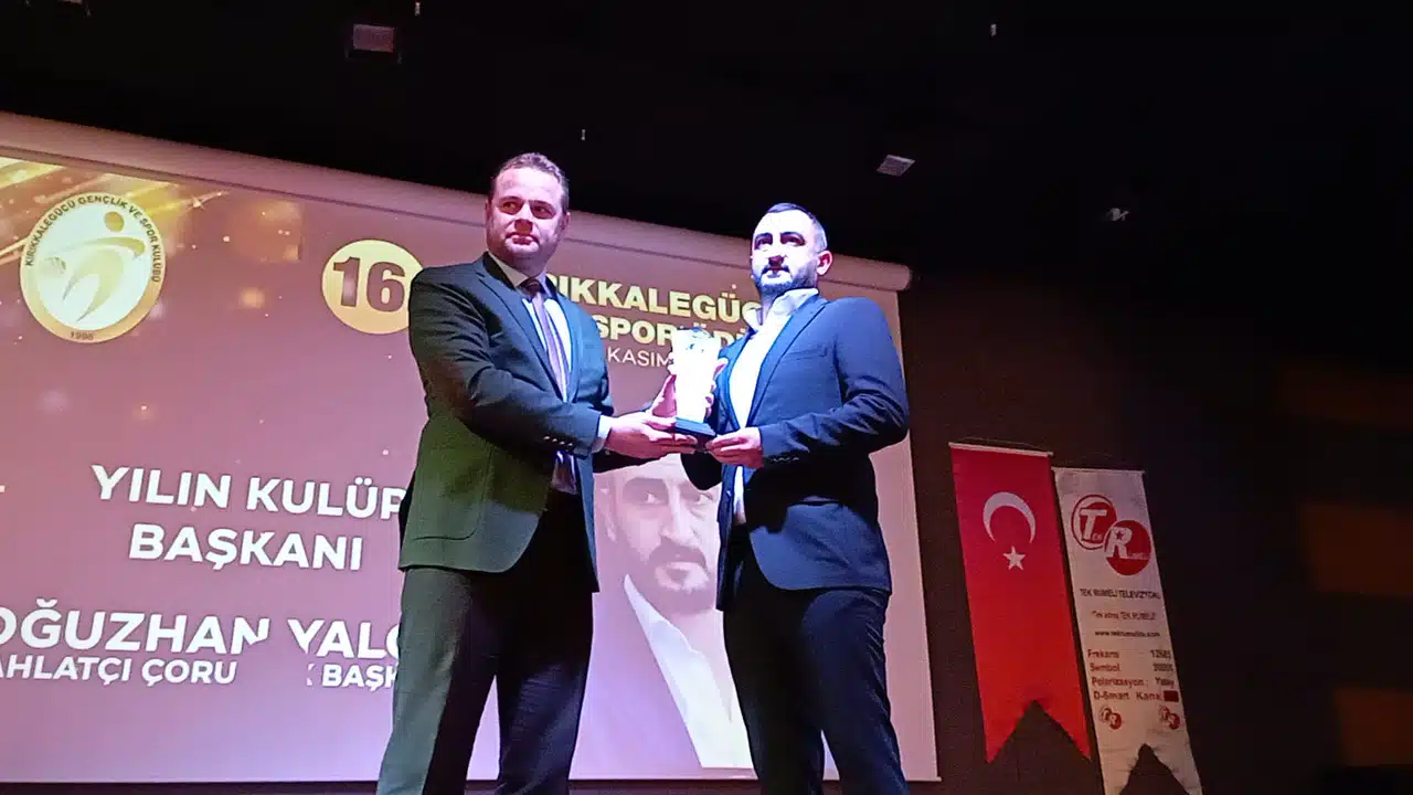 Kırıkkale Müftülüğü Külliyesi Konferans Salonunda düzenlenen törende Ahlatcı Çorum FK Kulübü Başkanı Oğuzhan Yalçın, “Yılın Kulüp Başkanı” ödülüne kayık görüldü. Başkan Yalçın ödülünü alırken, kendisine bu ödülü layık görenlere de teşekkür etti.